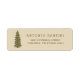 Etiqueta de endereço de retorno da árvore de Natal com luzes e lâmpadas em um plano de fundo alto de cor sólida