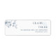 Etiqueta de endereço de retorno de casamento elegante com detalhes botânicos desenhados à mão e uma tipografia simples moderna em azul. Parte da nossa Coleção "Casamento Azul da Tipografia Elegante Moderna" com vários produtos de coordenação disponíveis, incluindo envelopes e selos de envelopes. Visite a coleção inteira aqui: https://www.zazzle.com/collections/modern_elegant_typography_blue_wedding_collection-119316758339581837