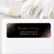 Esta etiqueta elegante de endereço de devolução de casamento apresenta um design de brilho falso em rosa dourado disposto diagonalmente em dois cantos. O texto personalizável combina escrita à mão em rosa pálido e fontes copperplate em um fundo preto.