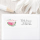 Rótulo de endereço de retorno com melancia de aquarela e "um pequeno docinho está a caminho!" escrito num roteiro divertido. Corresponde à coleção de melancia. Personalize com seu nome e endereço.