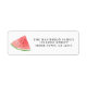 Esta etiqueta de endereço de retorno é decorada com uma melancia de verão de aquarela. Facilmente personalizável. Use a Ferramenta Design para alterar o tamanho, o estilo ou a cor do texto. À medida que criamos a nossa trabalho de arte, não encontraremos esta imagem exata de outros designers. Original Watercolor © Michele Davies.
