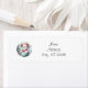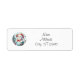 Bonito boneco de neve de Natal sentado numa xícara de chá com uma árvore de Natal e gatinho ao fundo.