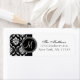 Cor damasco preta e branca com a etiqueta de endereço de devolução inicial do monograma. Use seus convites de casamento e cartas de agradecimento. Personalize com os detalhes do seu monograma inicial, nome e endereço. Escolha a cor do plano de fundo e a cor do monograma também. Copyright Elke Clarke e Licenciadores.