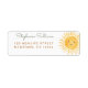 Esta etiqueta de endereço de devolução para chá de bebê apresenta um sol em aquarela, tipografia elegante em verde sálvia em letra cursiva. Fácilmente personalizável. Aquarela Original © Michele Davies.