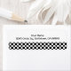 Uma etiqueta de endereço de devolução personalizada com bolinhas pretas simples, grandes e pequenas, em um padrão de fundo retrô divertido. Clique em Personalizar para alterar as fontes, adicionar texto personalizado, alterar as cores do fundo e muito mais.