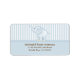 Vestir seus convites para o chá de bebê, anúncios de parto de bebê ou bebê, obrigado a anotar cartões com nossas doces etiquetas de endereço de elefante azul de bebê! Esta etiqueta de endereço de retorno apresenta um elefante azul definido em um fundo listrado azul e branco com uma banda azul sólida. O toque perfeito para o seu Baby Shower Invtions. Confrontar convites para chuveiros de bebês disponíveis no nosso compro em www.celebrateitinvites.com. gráficos ©BELDS