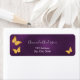 Borboletas douradas em um fundo roxo. A cor roxa é irregular. Personalize e adicione seu nome e endereço. Perfeito para um chá de noiva, chá de bebê ou convites para festa de aniversário.