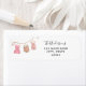 Etiqueta de endereço de retorno com a cor d'água rosa crochetada com roupa de bebê inspirada em vintage pendurada numa linha. Corresponde à Coleção de Bebês Crochetada. Personalize com seu nome e endereço.