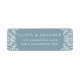 As etiquetas de endereço de retorno do estilo Art deco apresentam seu endereço de retorno em letras brancas em um fundo azul de ardósia, enfeitado com o estilo picado de papel branco legado nos cantos. Projetado para combinar com nossa coleção de artigos de teatro em Tourmaline.