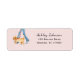 Dama passeando com cachorro fofo aquarela, etiqueta de endereço de retorno ilustrada em um fundo rosa suave.