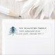 Uma etiqueta de endereço de retorno simples e moderna que apresenta o seu nome e endereço em letras negras suaves ao lado de uma ilustração de pinheiro desenhado manualmente com solteiro. Projetado para coordenar com a nossa coleção de férias de Pines Desenhados.