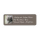 A etiqueta do endereço de retorno tem um tiro certeiro de um chocolate macho puro e uma tábua prateada de gatinho britânico de cabelo longo chamado Cooper.