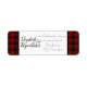 aumente a probabilidade de seus convidados retornarem seus RSVPs adicionando uma etiqueta de endereço aos envelopes RSVP. Projetado para combinar com a coleção de papelaria de casamento da Xadrez Vermelha e Negra.