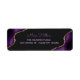 Esta etiqueta de endereço de retorno apresenta uma profunda borda de fatia geodésica de árgula roxa com texturas de cor d'água e sotaques dourados falsos em um fundo de cinza de carvão negro. Os textos são uma combinação de cores claras e roxas brilhantes e podem ser personalizados ou alterados usando o menu de edição.