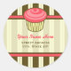 Um adesivo com uma ilustração de um cupcake rosa com caimento correspondente. O fundo é listras castanhas verticais. Procure itens correspondentes, como convites na categoria "Compro de Aniversário" da loja de Escolas Rosa.
