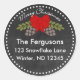 Este é um adesivo bonito para colocar em seus envelopes de Natal ou pacotes. Ele tem um fundo de quadro com texto branco. Ele apresenta cones de pinho e um arco vermelho.