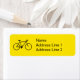 Este design de etiqueta de endereço apresenta uma silhueta preta de uma bicicleta em um fundo amarelo. O nome e o endereço podem ser personalizados.