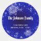 Etiqueta de endereço de retorno festivo com flocos de neve gelados em tons de azul. Para escolher sua própria cor de fundo sólida, consulte este rótulo: