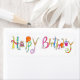Boas vinhetas de aniversário em cartazes brilhantes com balões, bolo de aniversário e cupcake em fundo de turquesa. O fundo do rótulo é branco. Totalmente personalizável. Celebrar um aniversário ou outra ocasião com o bolo reluzente e a arte original cupcake que é perfeita tanto para rapazes e raparigas como para adultos. As cores estão em cores mais suaves e vibrantes.