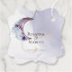 ETIQUETA DE FAVOR DE AGRADECIMENTO | Lua crescente roxa ametista deslumbrante, flores roxas e azuis pálidos com acentos de folhagem de eucalipto sage pálido destacadas por um fundo de lavagem de aquarela lilás pálido e dourado - Design por theBarefootBride ™.