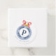 Este design de ornamento natal vintage traz todas aquelas boas vibrações nostálgicas de dias passados. A frente desta etiqueta de presente apresenta um ornamento de vidro azul soprado com um arco rosa. Abaixo está um lugar para personalizar com seu nome. Há um lugar no centro do ornamento para você adicionar sua inicial. A parte de trás do cartão tem um fundo branco com as palavras "Warm Winter Wish (Desejo quente de inverno) em uma letra azul com letra azul no estilo de letra.