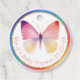 Elevem seus favores de chá de fraldas com essas etiquetas redondas de borboleta de cor d'água, acentuadas por um falso quadro de brilho dourado e borda do arco-íris. O delicado design apresenta uma borboleta cor-de-rosa macia e detalhes personalizados do chá de fraldas, perfeito para se vincular a bolsas de tratamento, favoritos para festas ou presentes no obrigado. Um toque adorável para primavera, jardim ou comemorações caprichosas.