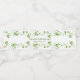 Etiqueta de garrafa de água bordeada com folhas de shamrock esverdeadas e espirais em estilo aquarela.