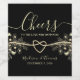 Celebre com estilo com esta elegante etiqueta de vinho preta e dourada, perfeita para mesas de casamento, presentes ou momentos de brinde. Com um coração de corda romântico e renda floral, combina perfeitamente com o seu conjunto completo de casamento para um visual coeso e luxuoso.