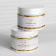 Etiqueta à prova de água para produtos cosméticos e/ou de sabão com fundo branco e borda falsa em ouro. Personalize-o com as informações de seus negócios e produtos.