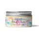 Uma etiqueta de vidro cosmético que contém ouro falso com um fundo floral pastel multicolorido. Este rótulo mede 1 polegada por 7,25 polegadas (25 mm por 184 mm) e é adequado para frascos com diâmetro igual ou superior a 2,31 polegadas (59 mm).