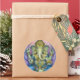 Elefante Hindu a deidade dirigida, Ganesh, senta-se em uns lótus cor-de-rosa que enviam suas bênçãos da boa sorte e da abundância. Formulário reproduzido a pintura original da arte mystical por Sue Halstenberg.