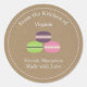 Um adesivo Rótulo rústico com fundo kraft castanho para utilização quando se oferece doces ou doces ou pequenas empresas. Vem com uma ilustração de 3 macarões franceses coloridos em cores rosa, roxa e verde e textos personalizáveis!
