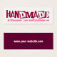 A marca de travamento feita à mão ou a etiqueta de produto contém o texto "Feito à mão", projetado em estilo verde em rosa e abaixo do qual os detalhes pessoais podem ser adicionados. Adição perfeita a artesanatos/produtos feitos à mão. © Manhã6