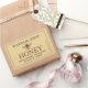 Rótulo de mel com Abelha de mel e borda dupla num fundo amarelo-mel. Também disponível em fundos de cor kraft, brancos e marfim.
