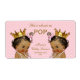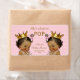 Ela está prestes a POP! Imprincesa étnica elegante personalizada gêmeos gêmeos chá de fraldas mini champanhe. Uma bela ilustração vintage de duas filhinhas africanas americanas, bonitinhas e adoráveis, com coroas princesas de na moda, brincos de pérolas e colares e arcos em seus cabelos, em um padrão colchado cor-de-rosa colorido com fundo de pérolas com texto personalizável. Se precisar de assistência para personalizar seu produto, entre em contato comigo através da minha loja e eu ficarei feliz em ajudar. Tenho produtos correspondentes na minha loja. NOTA: Estes são gráficos impressos planos - sem peças levantadas.