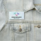 Nome de etiqueta com um design bonito. 3 borboletas de aquarela, pintadas de rosa, roxo e verde. Um fundo de aquarela azul claro com pistas de rosa claro.