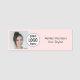 Blush Pink Photo Logo Stylist Name Tag. Clean and classic, black text with photo and your logo on blush pink background Add your details and personal photo. Upload your logo. Adjust photo image in the design edit tool, as needed. Contact the designer for any cutomization questions.
