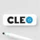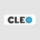 O nome Cleo com a letra O como um botão. as cores podem ser alteradas.