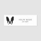 modelo de nome de etiqueta ideal para cuidar de cães, andar de cão, sentar-se com cães, serviços de fotógrafos de estimação. A design moderna mostra a cabeça de buldogue francesa e o seu nome.