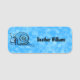 Este nome de etiqueta é azul-aqua brilhante com um caracol feliz giro com olhos brancos e corante azul com casca e face padronizadas com corante azul. Personalize seu nome com o modelo.