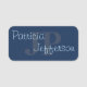 Aumente sua presença profissional com nosso inovador identificador monograma azul escuro. Seu nome ganha palco central em duas linhas, mostradas de forma destacada para reconhecimento imediato, enquanto suas iniciais personalizadas formam uma marca d'água refinada no plano de fundo. Este design inteligente adiciona uma camada de sofisticação à sua imagem, ideal para conferências e mixers de negócios. A interação entre elementos de primeiro plano e de fundo cria uma aparência visualmente marcante, mas perfeitamente profissional.