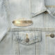 Dourada faixa com pérolas e tesouras em fundo de galho.