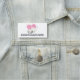 Nome de etiqueta com uma ilustração gráfica adorável. Uma gatinha branca com uma bela imagem impressa no pelo. Dormindo em paz. Um grande coração rosa atrás dela e algumas estrelas pequenas também.