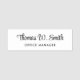 Nome de etiqueta branco profissional moderno com seu nome em um roteiro de na moda e título em uma simples tipografia.