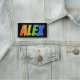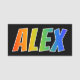 Este divertimento, características de design vibrantes, coloridos do nome de etiqueta o nome comum "ALEX", com as letras do nome que tem um espectro colorido do arco-íris gosta do teste padrão da coloração do inclinação, em um fundo colorido preto. Um nametag como este pôde ser vestido por um empregado, por um voluntário, ou por um representante de serviço ao cliente cujo o nome fosse Alex, para ajudar a identificar o portador aos clientes ou às outras pessoas. [~Z0000344]