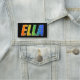 Este divertimento, características de design vibrantes, coloridos do nome de etiqueta o nome comum "ELLA", com as letras do nome que tem um espectro colorido do arco-íris gosta do teste padrão da coloração do inclinação, em um fundo colorido preto. Um nametag como este pôde ser vestido por um voluntário, por um representante de serviço ao cliente, ou por um membro do pessoal cujo o nome dado fosse Ella, para ajudar a identificar o portador aos clientes ou às outras pessoas. [~Z0000344]