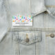 Nome de etiqueta com um padrão divertido e colorido. Cientista pesquisador vibe com bicos e frascos de diferentes formas e tamanhos em cores brilhantes e felizes.