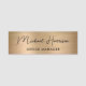 Nome de etiqueta profissional com seu nome em um script moderno e título em uma fonte simples em um fundo de metal falso em ouro escovado.
