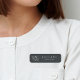 O nome e o título ou a companhia em caracteres brancos clássicos num fundo preto macio enfeitiçou uma concha tropical em folha de prata falsa. Uma bela escolha para empregados de cabeleireiros, salões ou spa, ou qualquer pessoa que trabalhe em uma ilha ou em uma praia.
