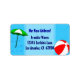Uma nova etiqueta de endereço personalizada com letras azuis personalizadas e praia divertida ou arte temática de uma piscina de natação de uma bola vermelha de praia, guarda-chuva verde-sol num fundo azul-aquático com ondas encaracoladas. Personalize-o para alterar fontes, cores, elementos, tamanho do rótulo e muito mais, e até salve seu design para mais tarde.